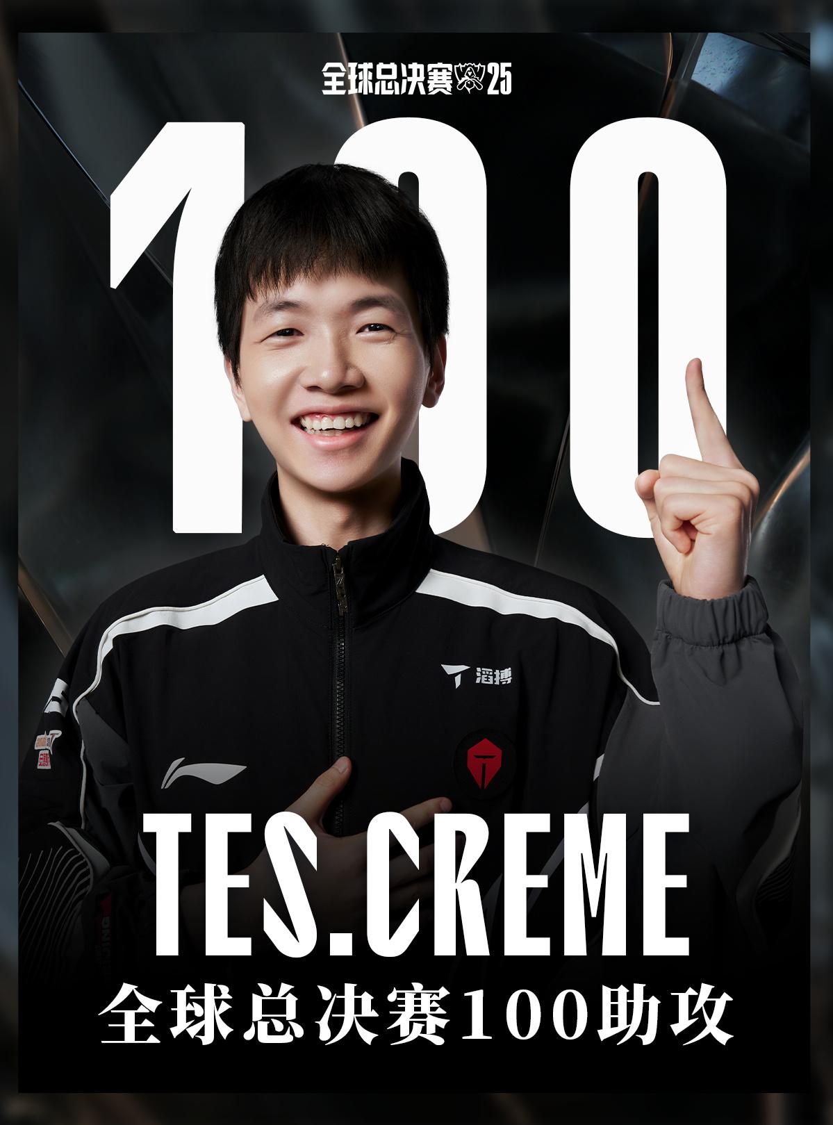 虎撲10月30日訊 在今日TES對戰(zhàn)G2的比賽中,Creme使用阿卡麗達(dá)成了在全球總決賽的總決第100次助攻,是攻成第275位達(dá)成該成就的選手,恭喜Creme!流言里程