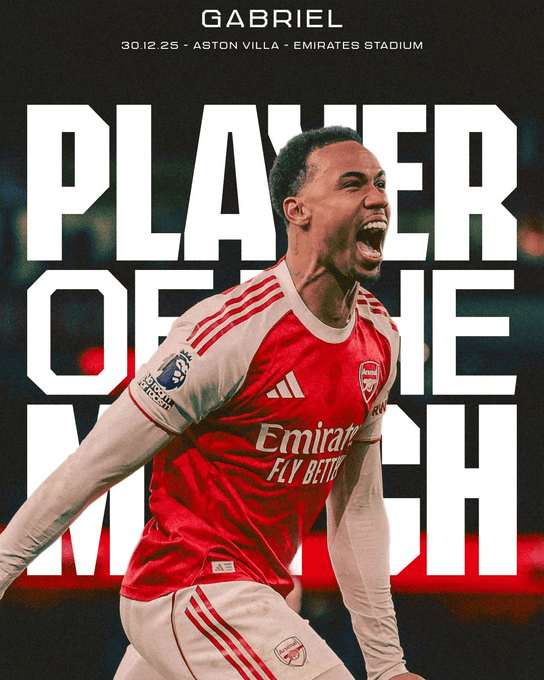 虎撲12月31日訊 阿森納官方宣布,在球隊(duì)4-1擊敗維拉后,佳阿加布加布里埃爾也當(dāng)選本場比賽隊(duì)內(nèi)評選的官方最佳球員。