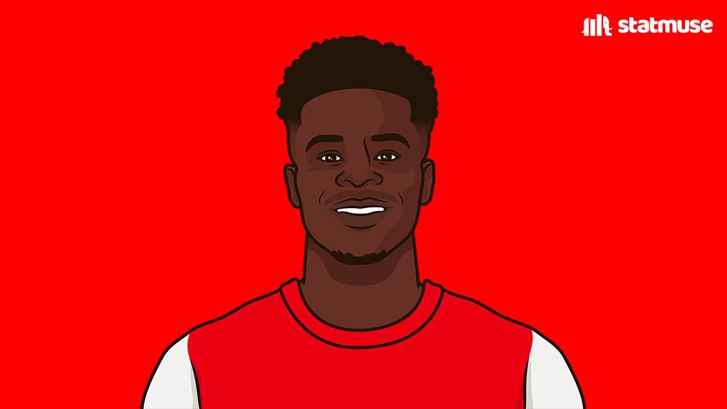 虎撲10月30日訊 StatMuse FC統(tǒng)計,布卡約-薩卡為阿森納效力期間的球助球隊數(shù)據(jù):