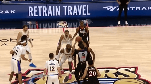 今日NBA常規(guī)賽,76人主場對陣湖人。球權(quán)