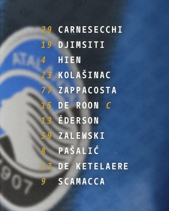 亞特蘭大替補:31-羅西、57-斯波爾蒂耶洛、42-斯卡爾維尼、69-阿哈諾爾、7-蘇勒馬納、10-薩馬迪奇、44-布雷西亞尼尼、70-丹尼爾-馬爾蒂尼、6-穆薩、43-科米、47-貝爾納斯科尼、90-科斯托維奇
