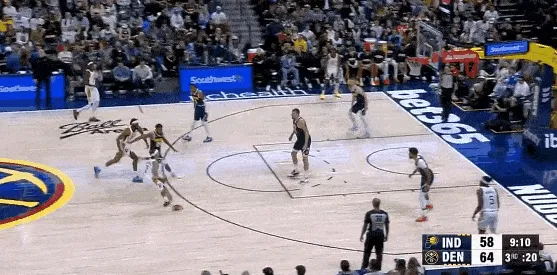 NBA常規(guī)賽,掘金對陣步行者的差縮比賽正在進行中。