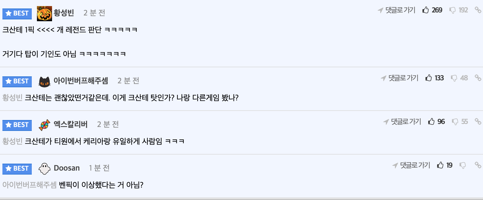 虎撲10月31日訊 2025英雄聯(lián)盟全球總決賽八強第四場比賽第三局AL率先拿到賽點,賽后韓國論壇網友對此展開熱議,站韓部分熱門評論翻譯如下:
