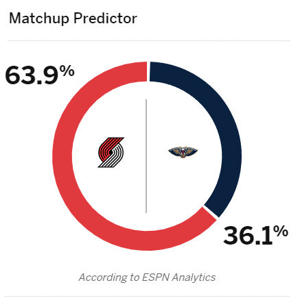 [流言板]ESPN預(yù)測(cè)明日開(kāi)拓者vs鵜鶘比賽:開(kāi)拓者勝率63.9%占據(jù)上風(fēng)由虎撲籃球資訊 發(fā)表在籃球資訊 https://bbs.hupu.com/502