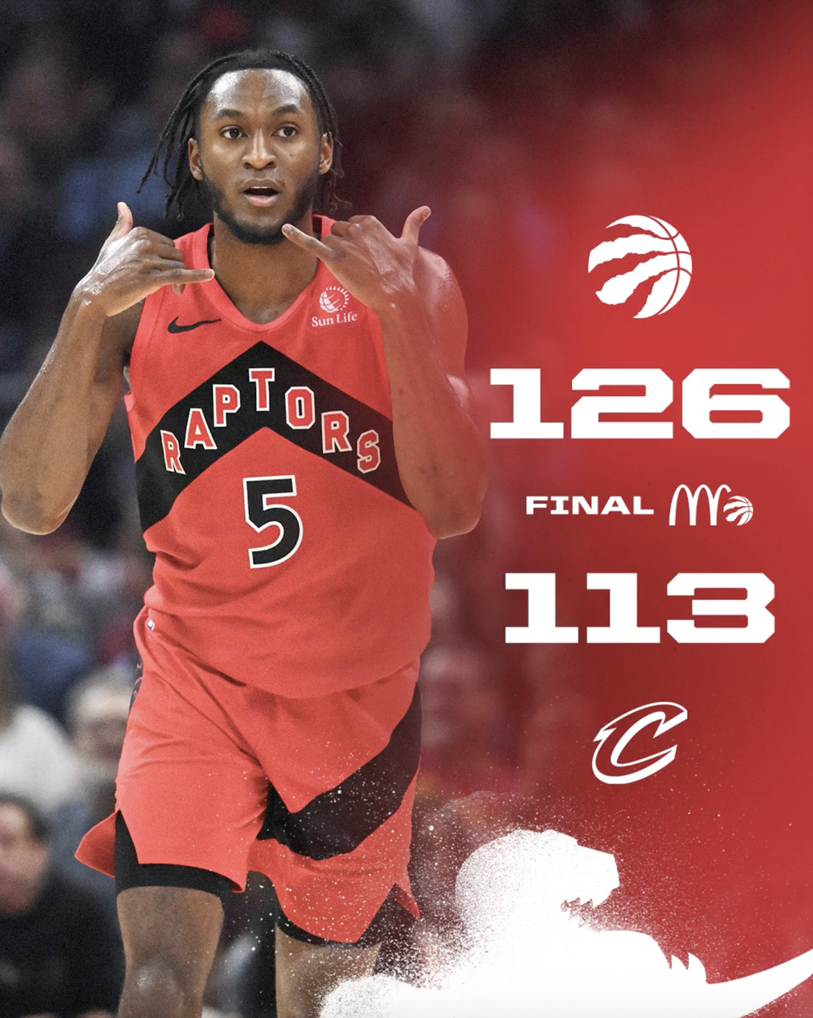 [流言板]客場取勝!猛龍官媒曬本場比賽的終場海報:大勝利