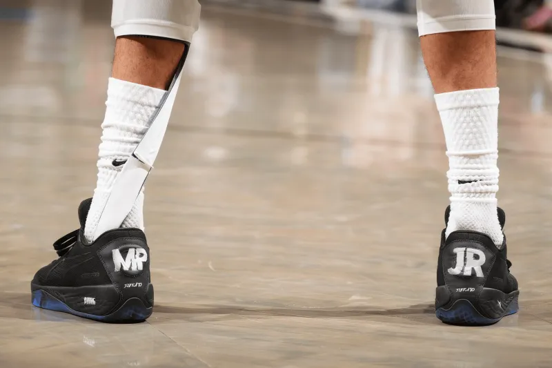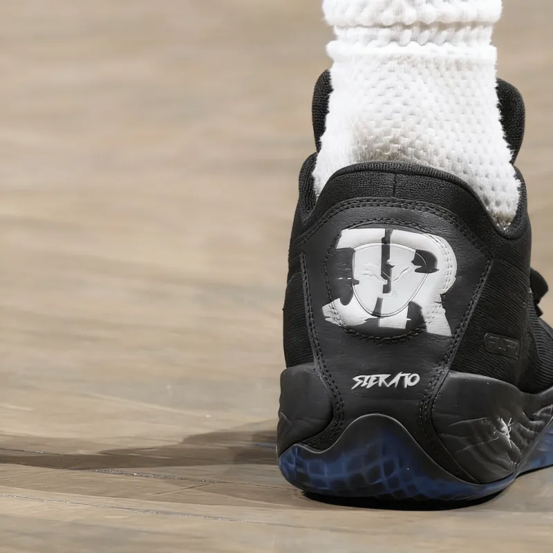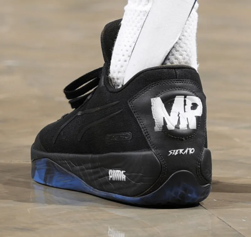 比賽中,小波特上腳Puma All-Pro Nitro PE,后跟處印有小波特名字縮寫“MP JR.”。